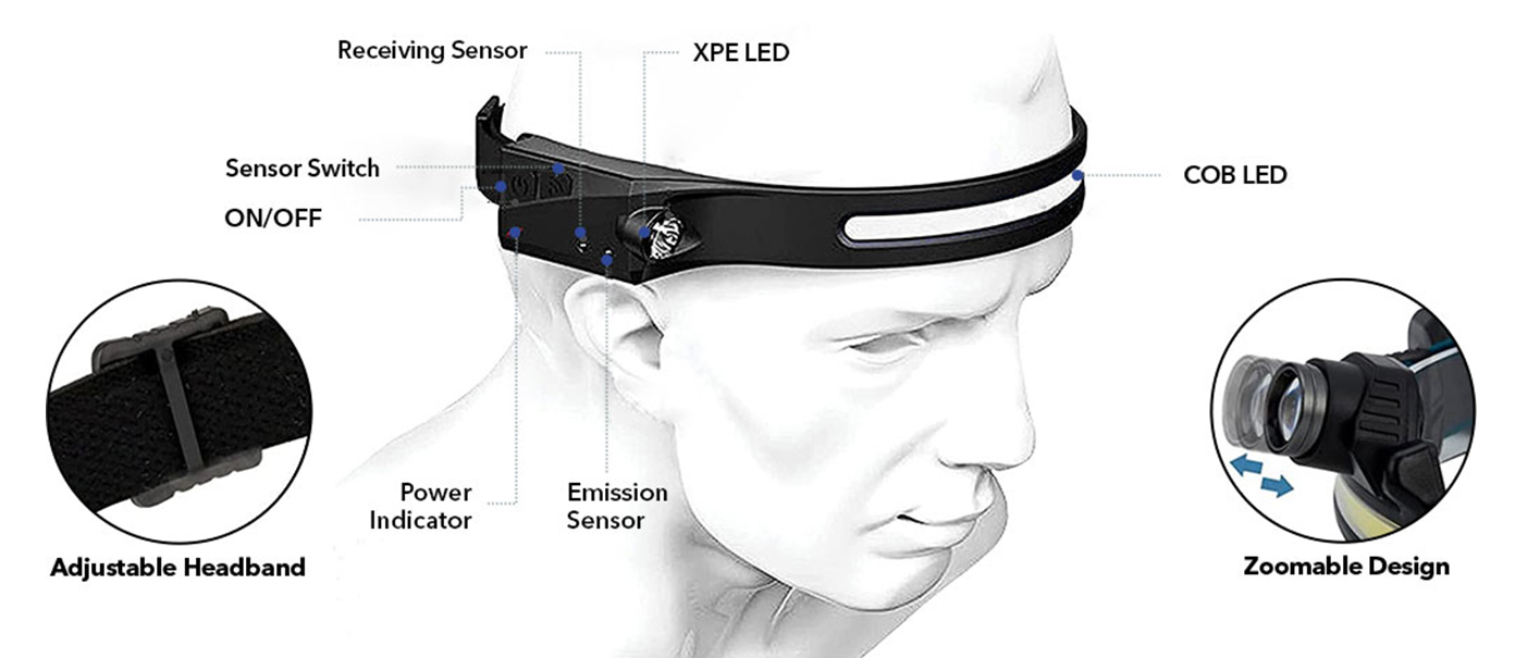 You can turn on or off the headlamp with a simple wave of your hand on the side that activates the motion sensor, offering 100% hands free operation..